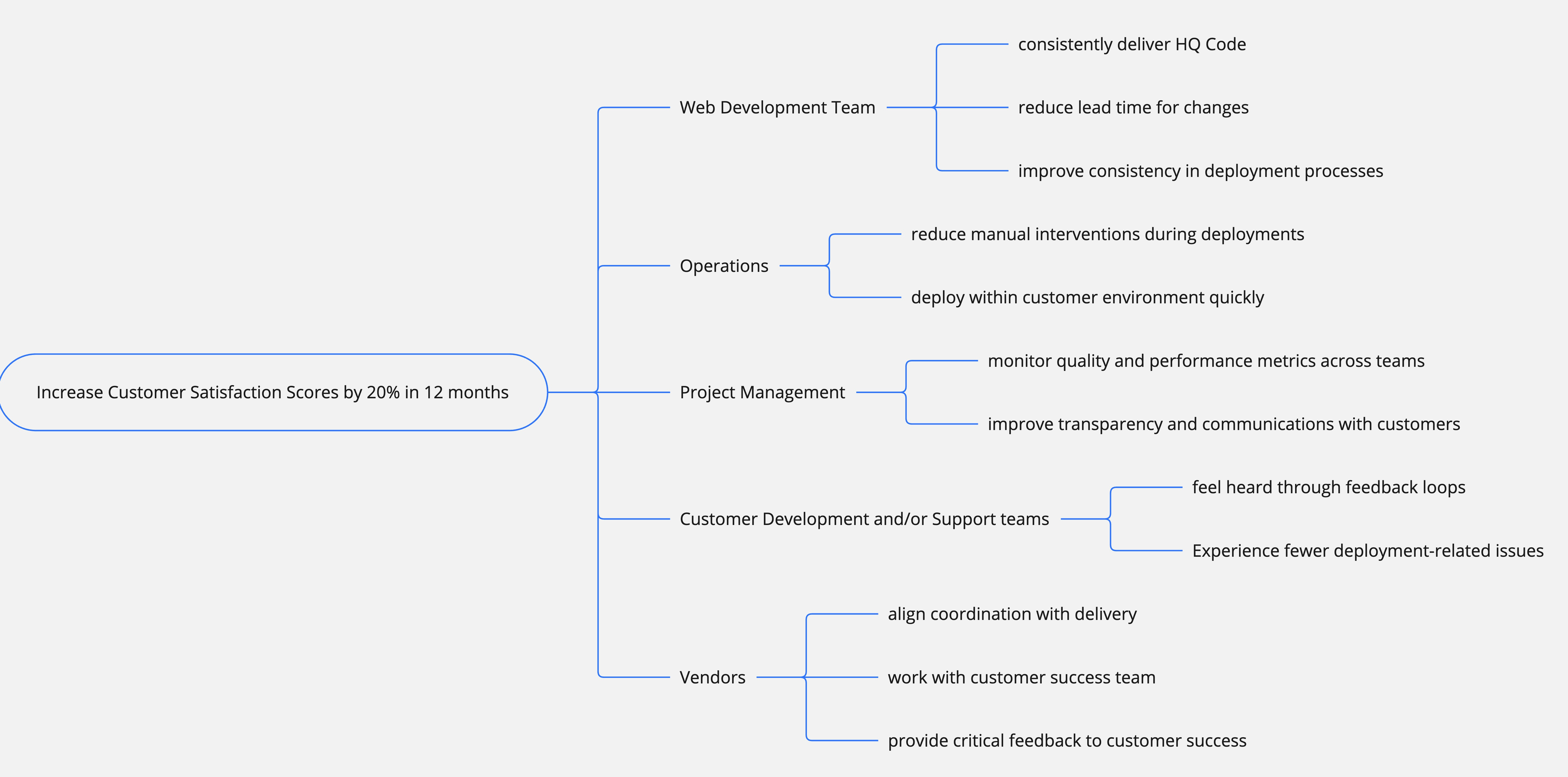 If we look at the Web Development Team’s impacts from the chart, delivering HQ (high quality) code was a prime example of an outcome that would align with customer satisfaction. The team worked to: